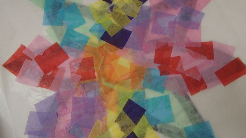 コツコツ・・・ためてきた、細かいお花紙~台紙に貼っていきますよ♪(ここは、一人一人のセンスの見せ所?!(笑))