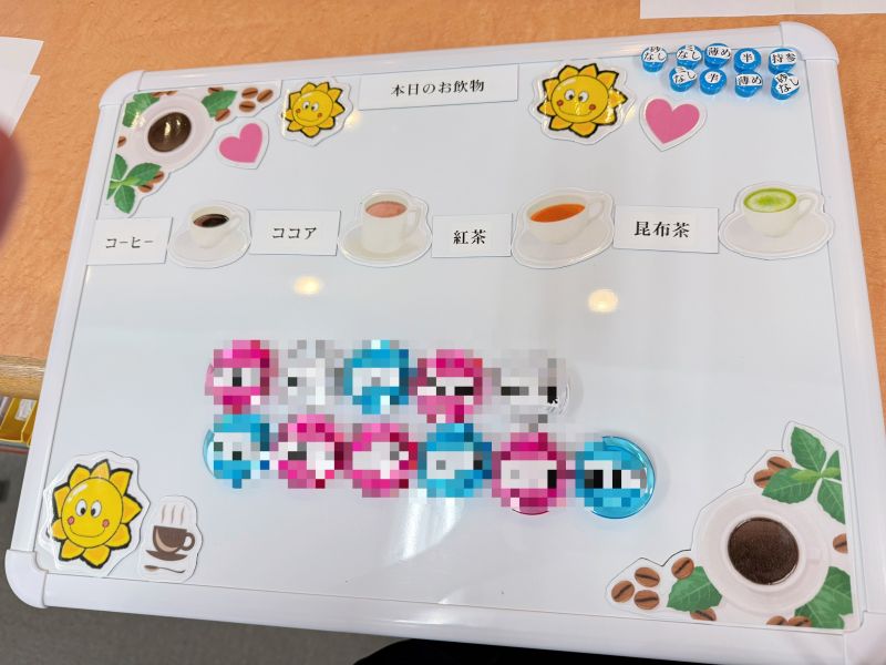 美川デイサービスでは利用者様に「今飲みたい一杯」を選んで