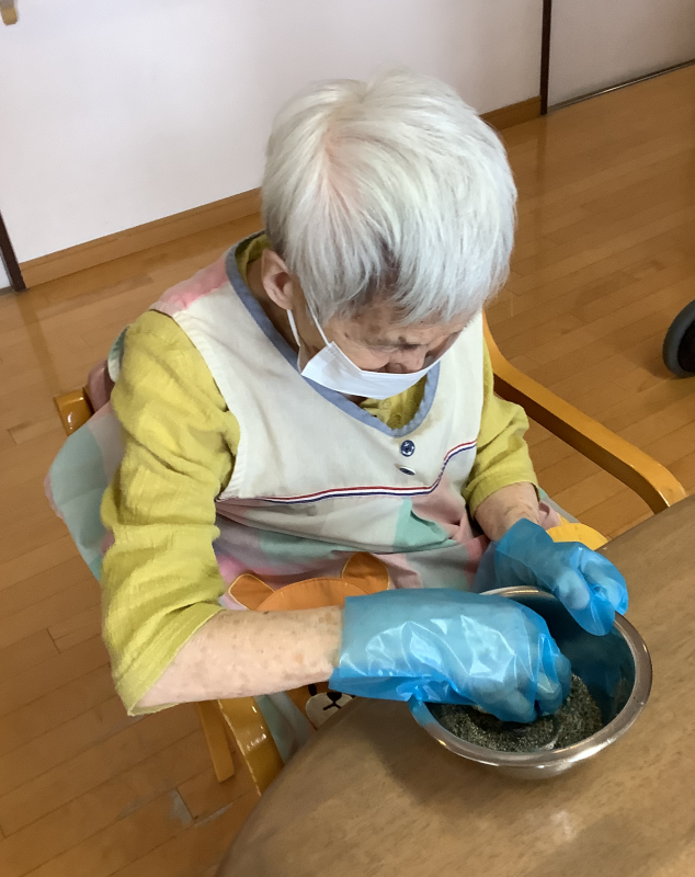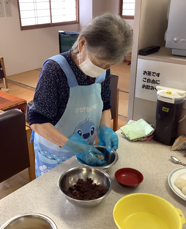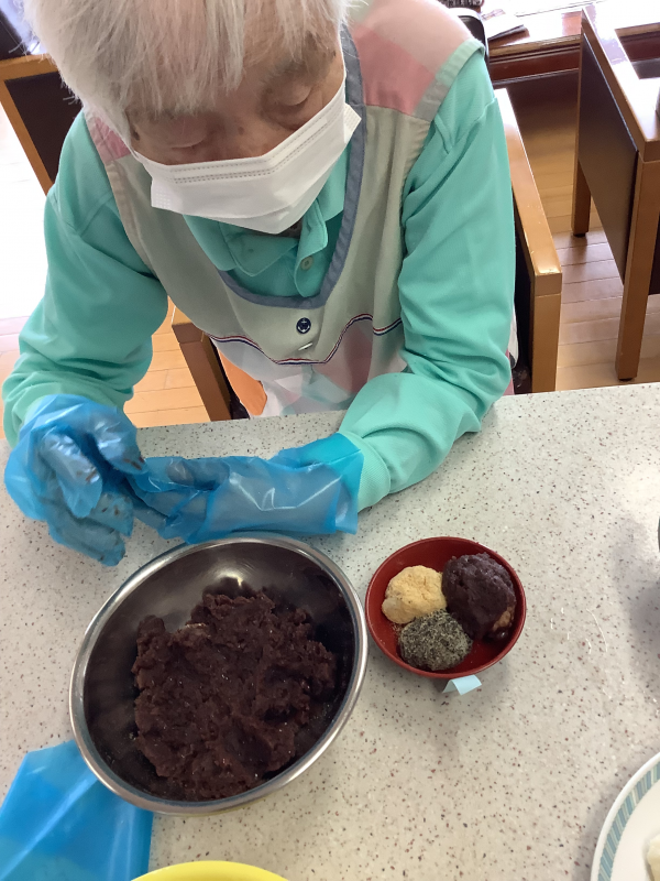 グループホームでは秋のお彼岸の時期にあわせて、おはぎを作りました。