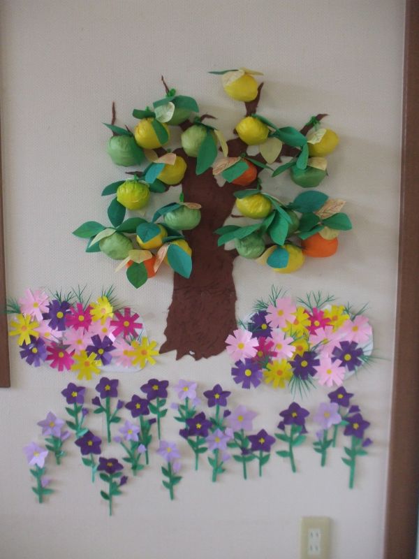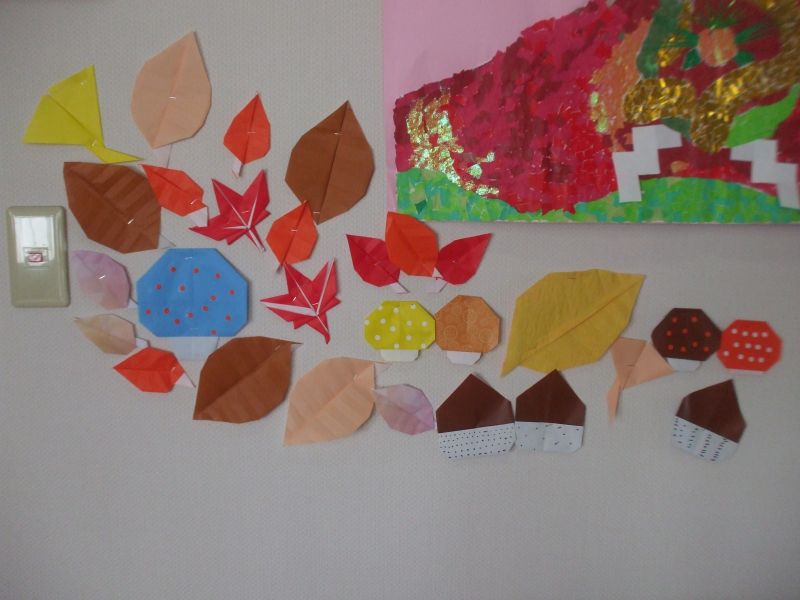 そんな中、少しでも秋を感じられれば…と、入居者さん達と「秋」を制作しました!(^^)!