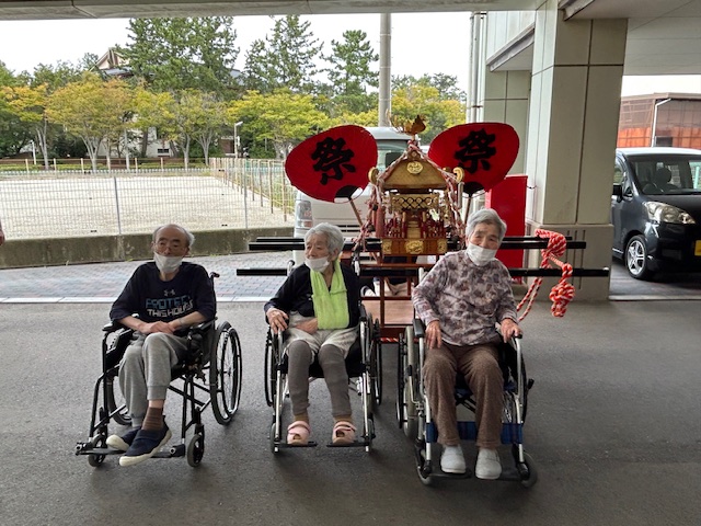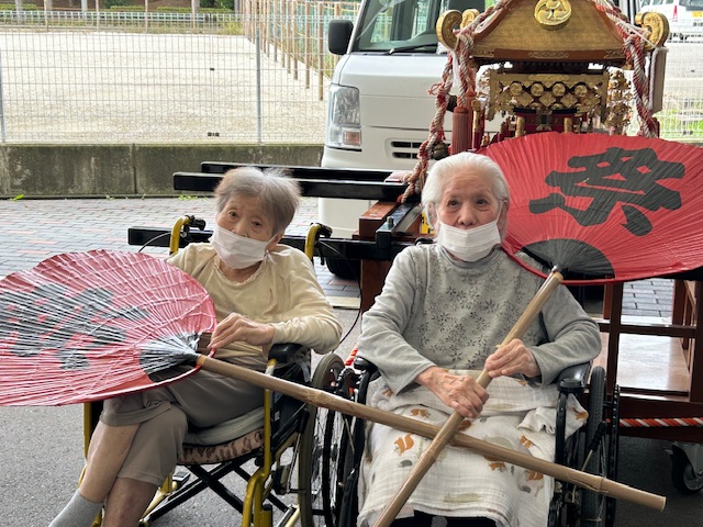 太鼓と笛の音が遠くから響いてくると玄関前で待っていた入居者様からは笑顔がこぼれます♡