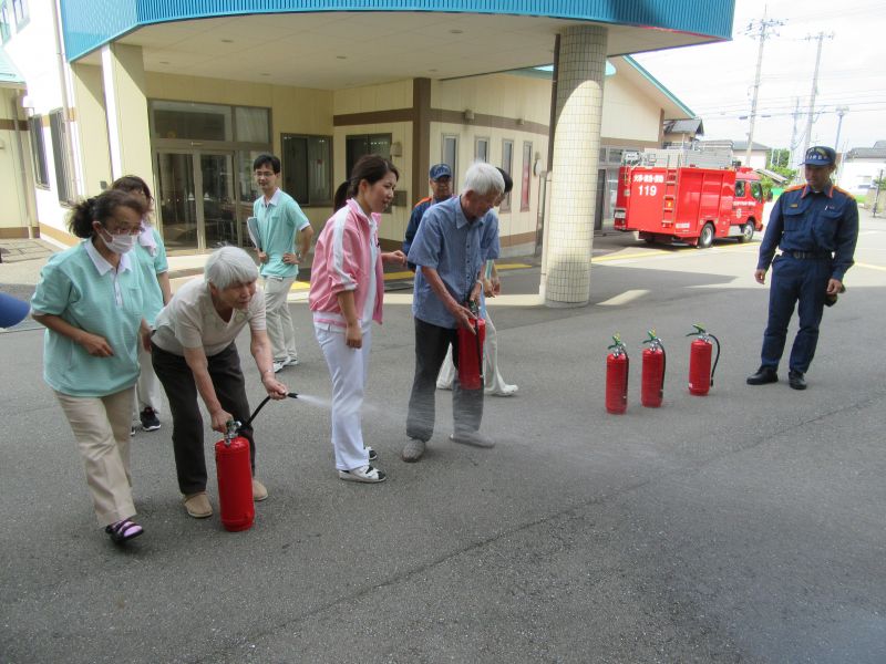 先週6月28日(木)に避難訓練があり、美川消防署の方が来て下さいました。今回は地震発生から出火を想定した訓練です。