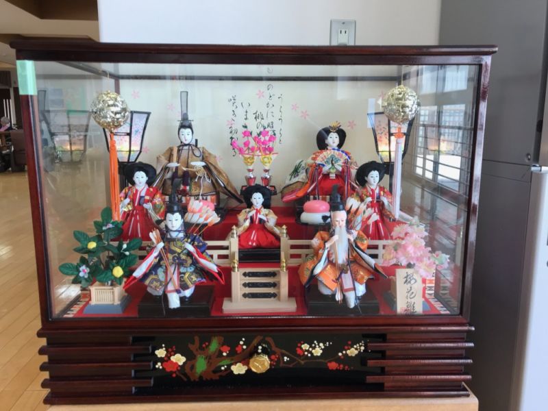 キラッと篤寿苑は入居者、職員の多くが女性とあってあちらこちらにお雛様が飾られています。