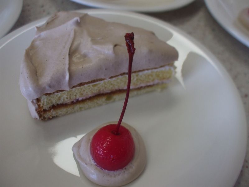 あーーーーーー気づいたらカット済み(笑)ケーキの隣にサクランボを添えて(*^。^*)