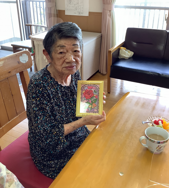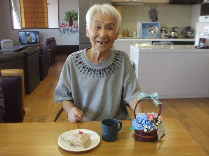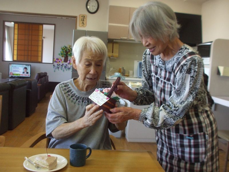 「お誕生日おめでとうございます。これからも元気で一緒に過ごしましょう」と入居者さんよりお祝いの言葉とプレゼントを渡して頂きました。