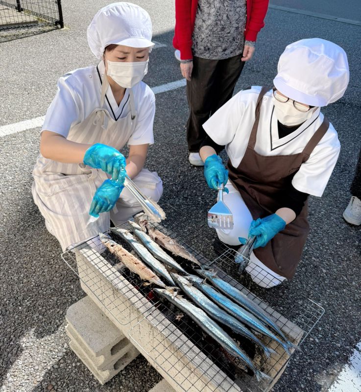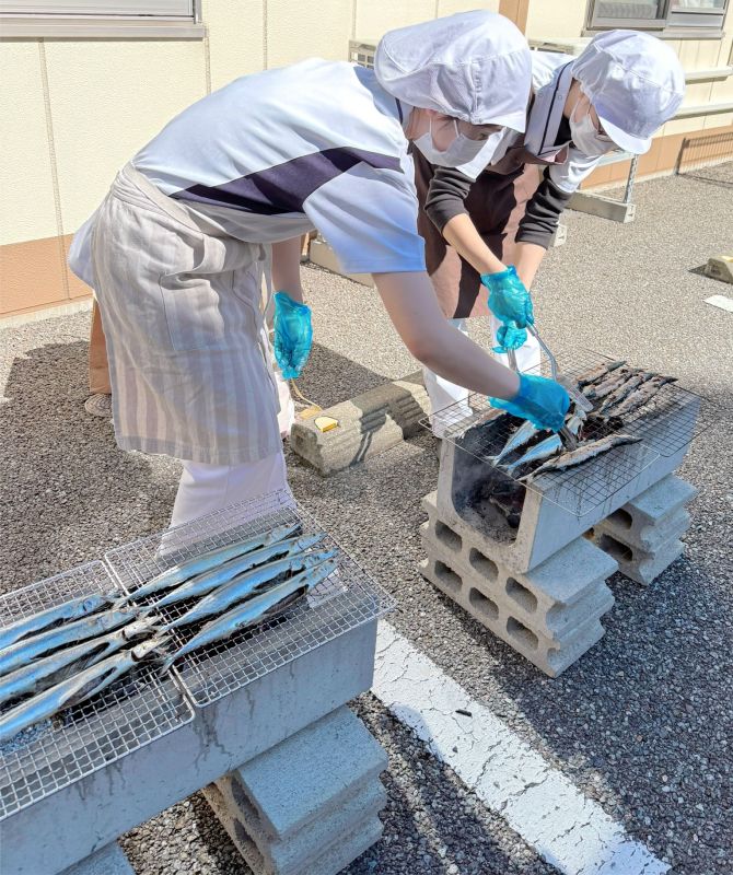 栄養士さん!暑い中美味しい秋刀魚を焼いて