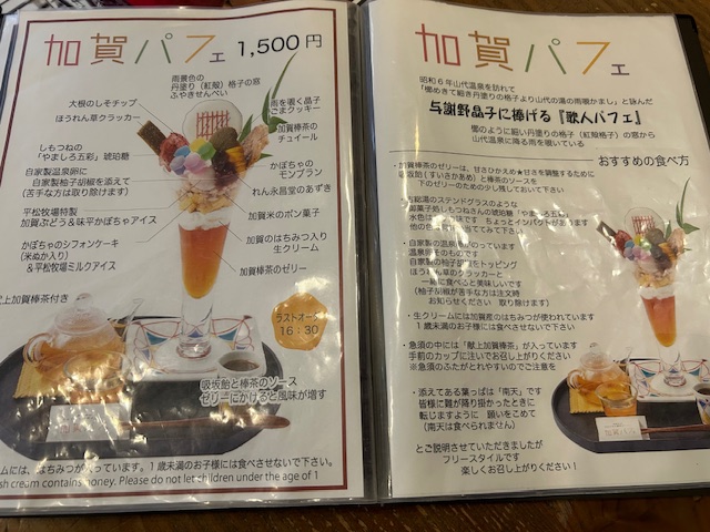 甘過ぎずさっぱりと食べられるとても上品などこかレトロな感じの素敵なパフェでした。自分へのご褒美でちょっと贅沢なひとときを過ごしてリフレッシュできた午後でした(^^♪他にも見どころがたくさんの山代。ぜひ、皆さんも山代温泉街散策を楽しんでみてください。