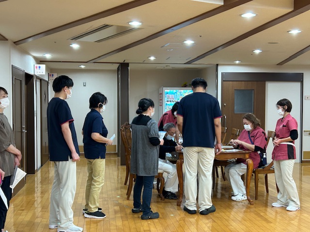 奥に見えるのは…施設嘱託医の井村先生とエリアの看護職員さんです。
