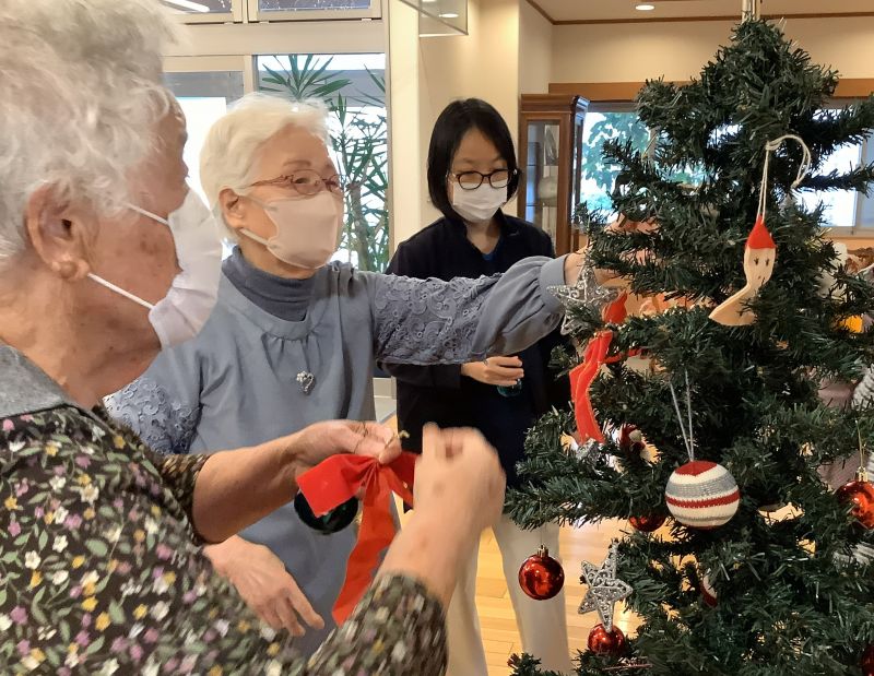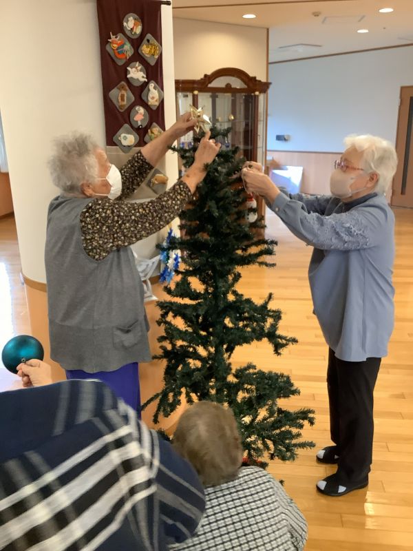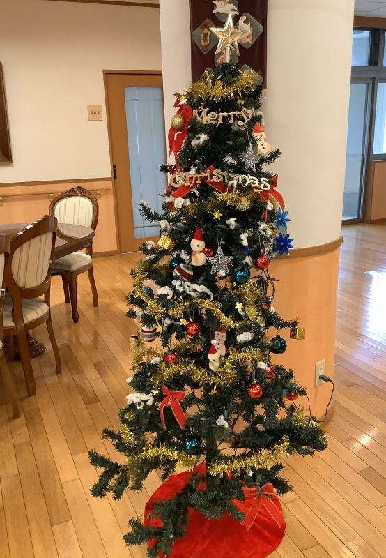 入居者様たちのおかげで、かわいいクリスマスツリーが完成しました!