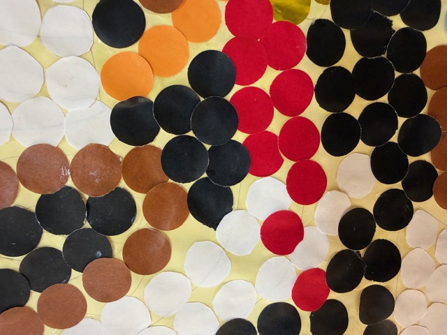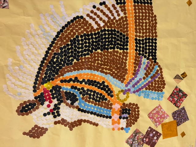 馬(午)の部分に近づいて見ると…小さく円にカットした色紙を貼ってあります。