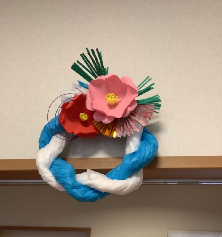 2階食堂と事務所にかわいいお正月のしめ飾りがありました(^^)入居者の方々もお手伝い頂いて作ったそうです。