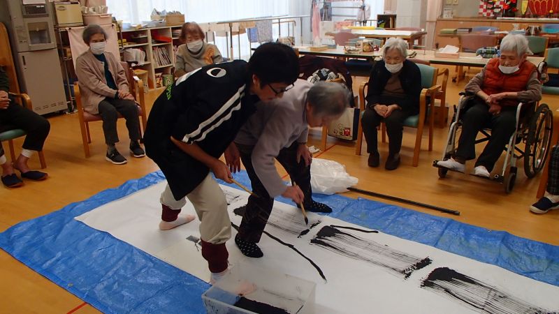 筆ではなく、なんと!!お役目を果たした?!ほうきを使って~