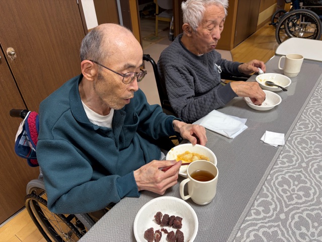 入居者様は皆さんお餅が久しぶりなのでとても楽しんで召し上がっていらっしゃったように思います(´艸`*)正直、お餅は喉につまらないかとても心配だったのですが、皆様上手に召し上がられていました。