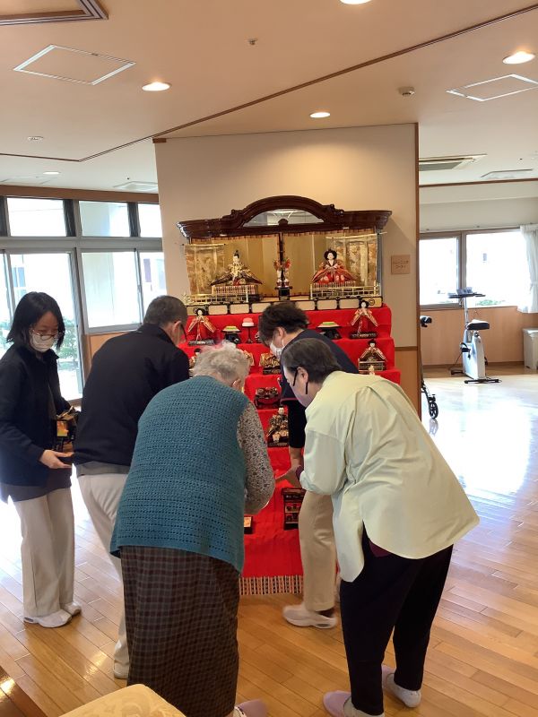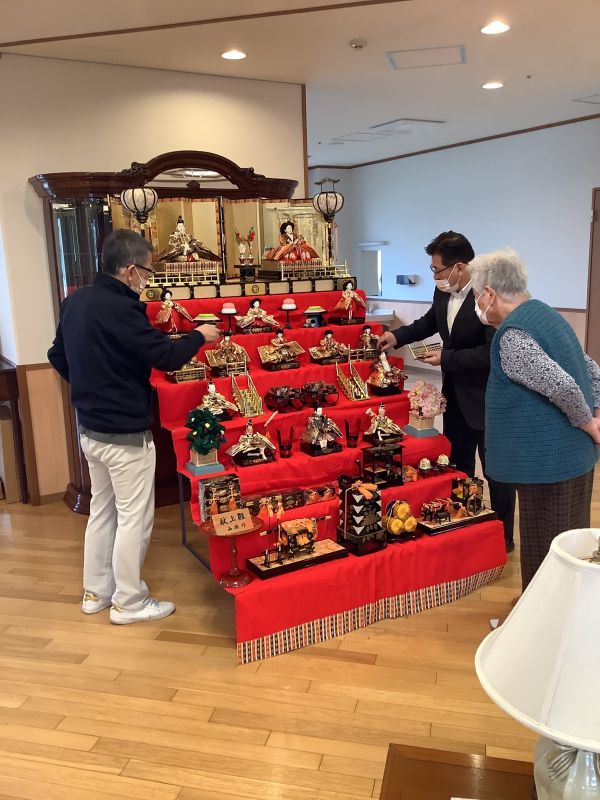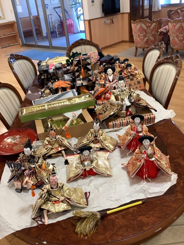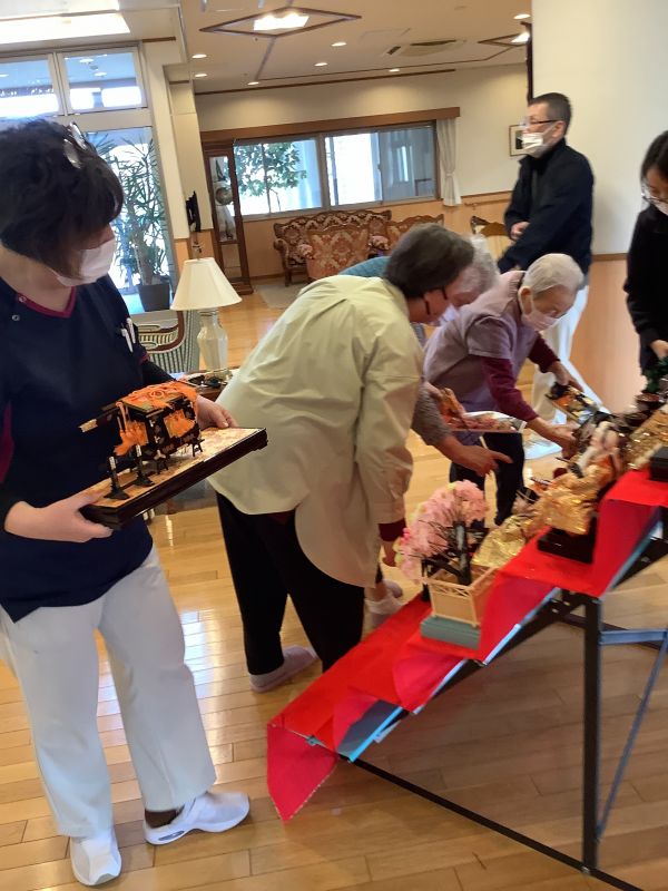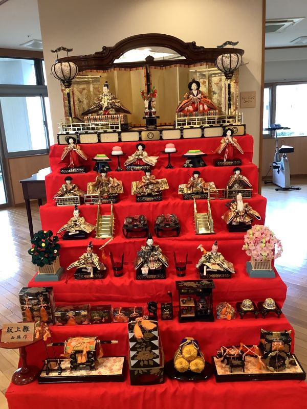 3月3日は”桃の節句”ですよね~。キラッと白山には7段のお雛様があります。コロナの制限などもあり飾るのは控えていたのですが今年は久しぶりに飾りました~\(^o^)/一般入居者にお手伝い頂いて。