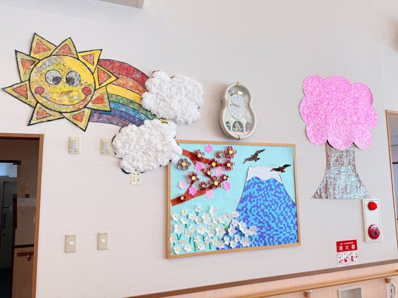 皆様で協力しながら、貼り絵で桜を作成しました(^-^)