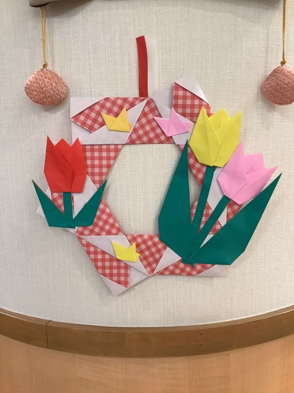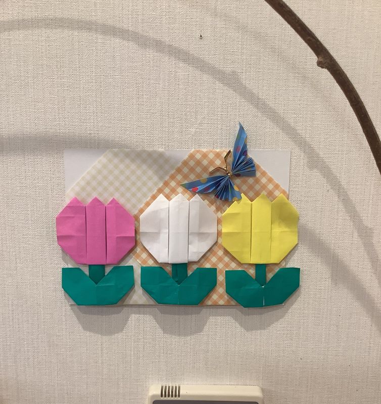 折り紙でチューリップを作って飾ってみました。春ですね~