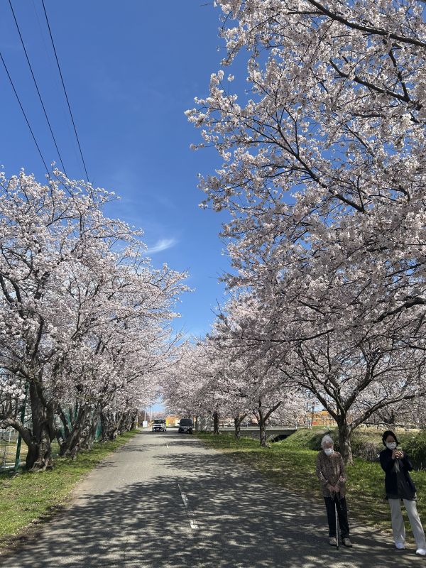 雨の桜並木もまたきれいでした。風が吹くと花びらが散って桜吹雪となり道路はピンクの絨毯を敷いたようになっていました。車内から「あらっ、綺麗や~。こんなさくら見たの初めてやー。」とお話されていました。私も初めて桜吹雪見ましたがスッゴク綺麗でしたよ!あちらこちらで桜を目にしますがそろそろ”葉桜”になりそうですよ~。お花見されるなら今週中かな~。