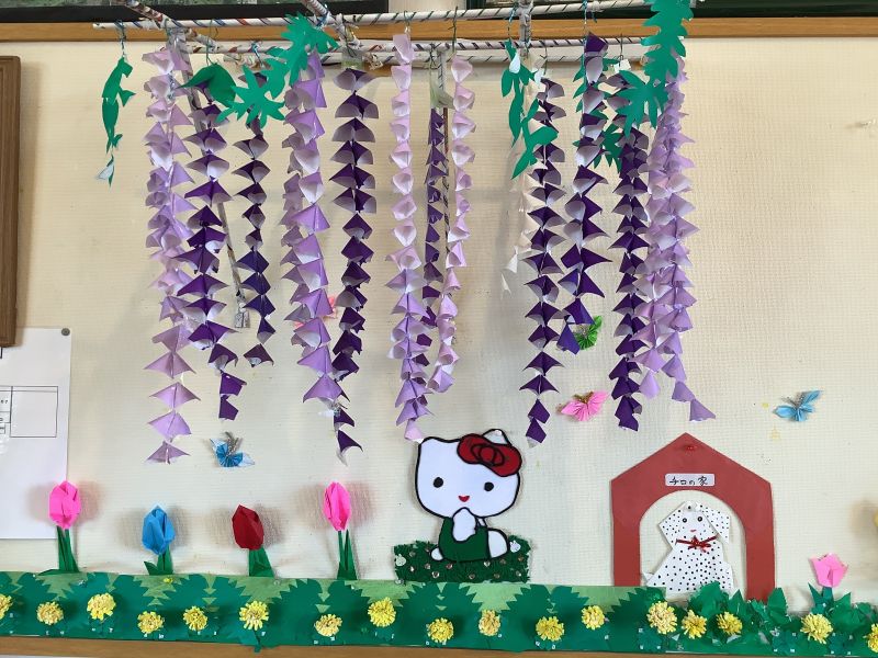 3階5階の壁画もチューリップと藤の花が満開‼