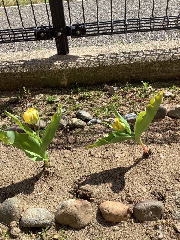 職員玄関にもチューリップ植えました。もう少しで咲きそう(*’▽’)