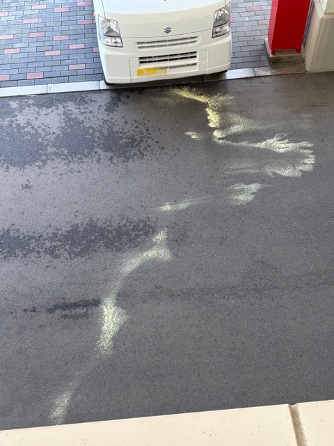 先日、出勤してきて駐車しようと思って地面を見てびっくり!