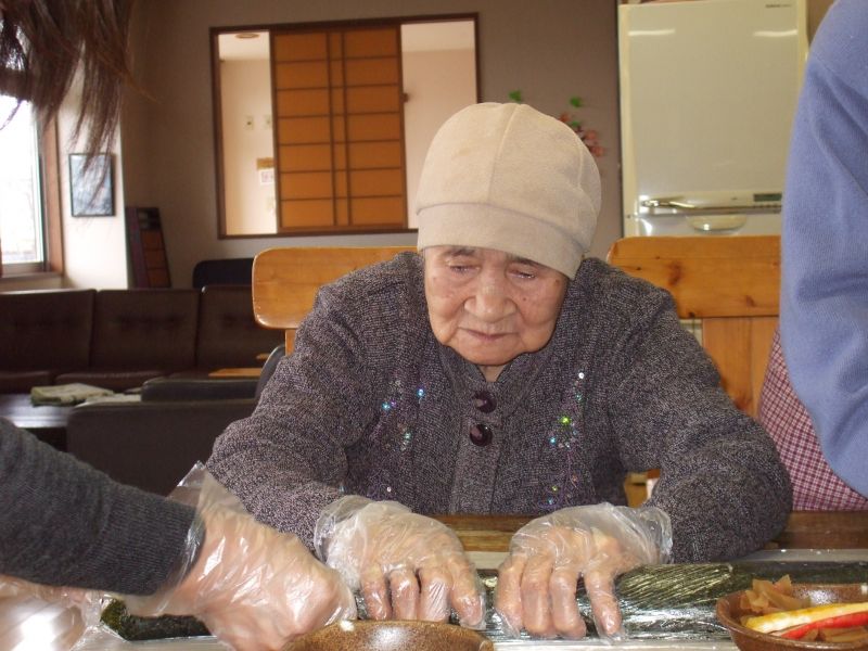 1月31日の地域の巨大恵方巻づくりをヒントに!? グループホームでも2月2日に長ぁ~い恵方巻づくりに挑戦したようです。