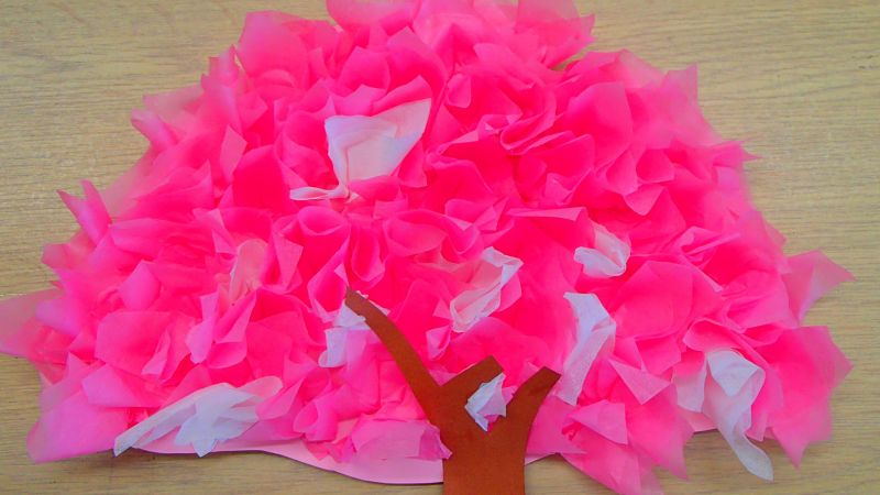 おはな紙を小さく切って、折り曲げて、少しのりをつけて、台紙へ貼ります(^^vそして、一つ一つ開くのです♪♪